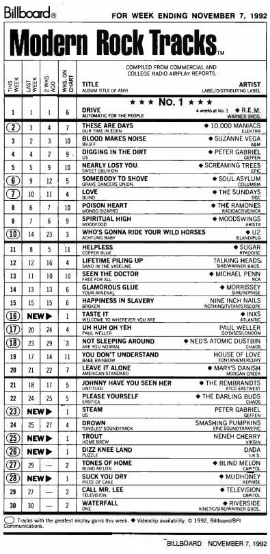 Thanks to my friends at Billboard and the Facebook group Modern Rock, here are the Top 20 songs from 31 years ago. Some of these bands and songs I’ve never heard of or at least I don’t remember them.