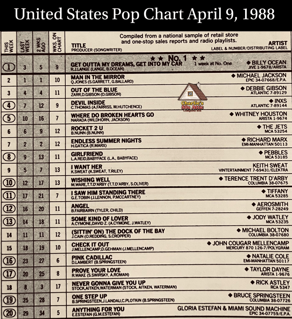 Let’s see what were the biggest hits of 37 years ago? What do we have here, classics by Rick Astley, Aerosmith, Terence Trent D’arby, Whitney Houston, INXS, Michael Jackson and Billy Ocean.